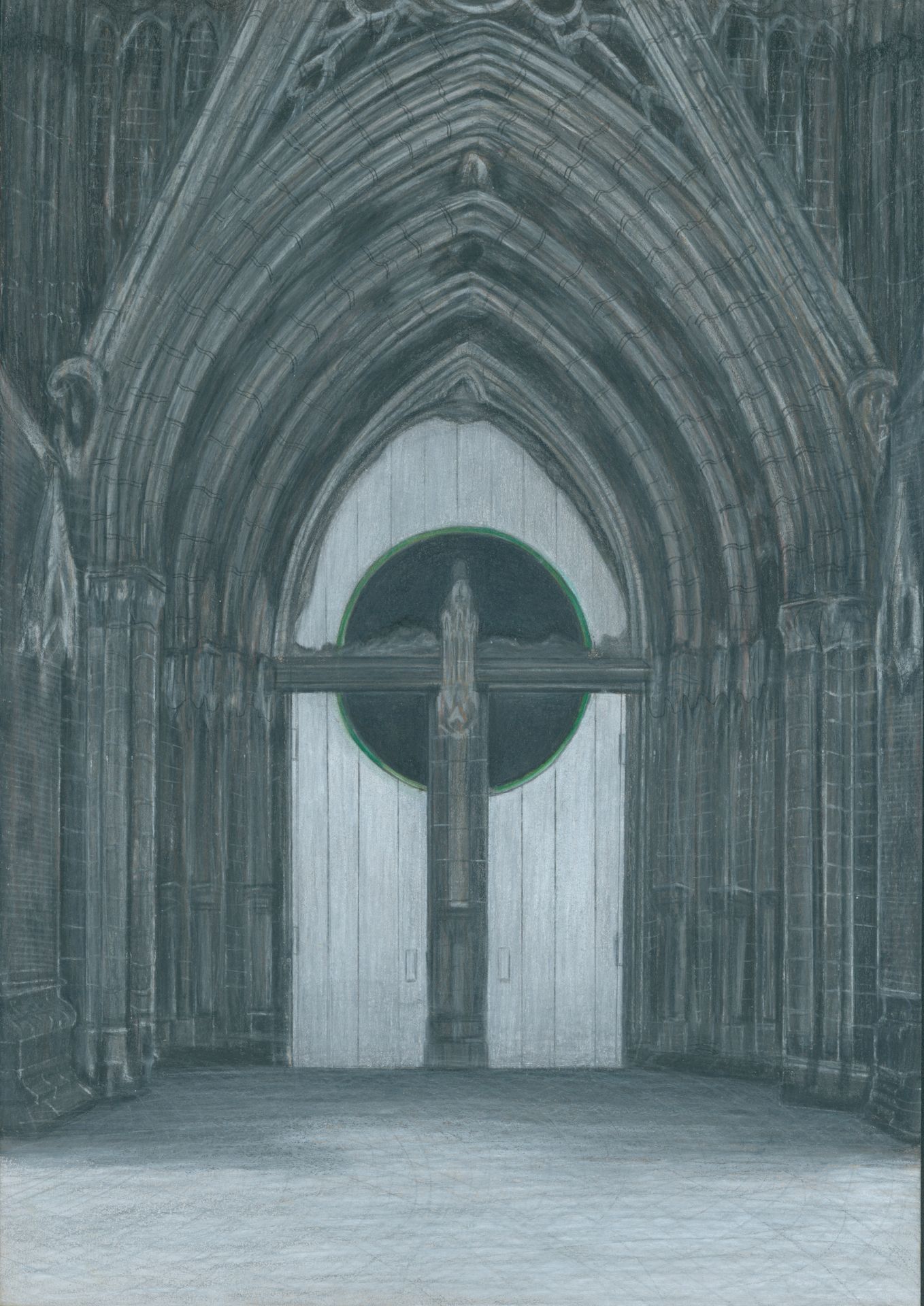 The elevator remains at the center, of course. The access control system will be modernized so visitors can move freely around the elevator tower. The west portal will be closed, as in many European churches. The north portal becomes a side chapel, where the „Weibliche Engel“ by Barbara Häger will receive a more dignified setting. Art and architecture reinforce one another. The artworks urgently need to be better aligned with the spaces, we have several suggestions. The central square will also be planted, encouraging visitors to circulate around it. Benches invite people to linger in this urban oasis. Rainwater collected on the plateau can be stored more effectively, helping to cool the area in summer.
